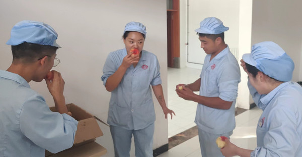 8月23日下午,伊力特釀酒四廠各車間員工歡天喜地的結伴到釀酒車間領取公司黨委慰問的水果。
