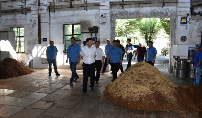 8月2日,伊力特實業股份有限公司黨委書記、董事長陳智,公司黨委委員、副總經理劉新宇,到釀酒三廠、制曲中心開展調研指導工作,公司安環部、新源分公司、釀酒三廠、制曲中心領導陪同。
