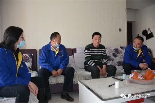 4月 1日,新疆伊力特實業股份有限公司熱力廠廠長于學軍、黨支部書記、副廠長唐林、副書記虞卉一行看望慰問患病員工趙迎春和陳洪進,讓他們切身感受到伊力特公司及熱力廠黨支部的關懷。