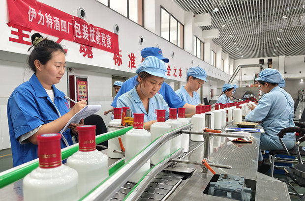 6月24日下午,在伊力特釀酒四廠包裝車間,一場以“建功‘十四五’、奮進新征程”為主題的包裝技能比武正如火如荼地展開,只見一雙雙靈巧的手,在包裝瓶上翻飛起舞,演繹著匠心的傳奇。120余名女工參加了此次競賽。
